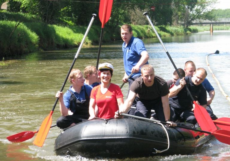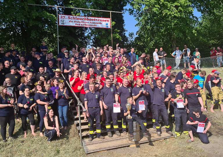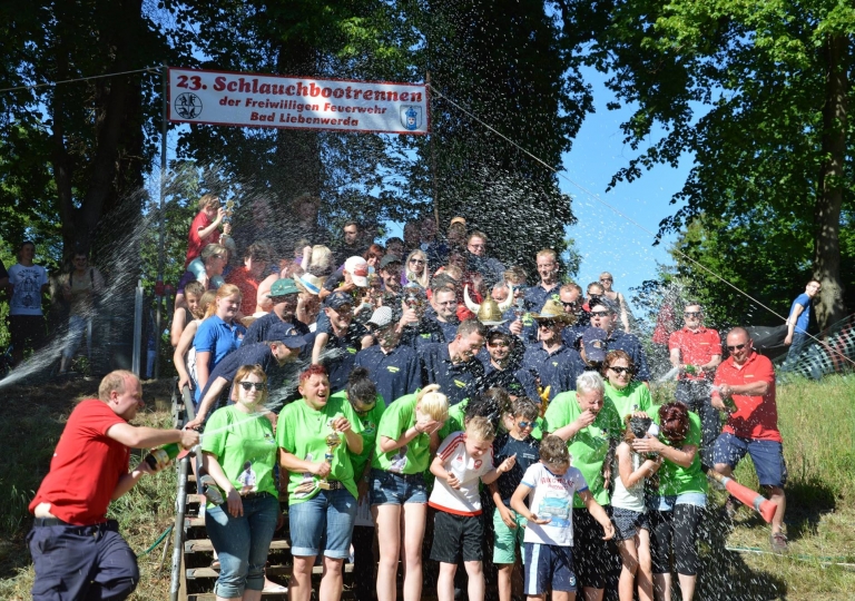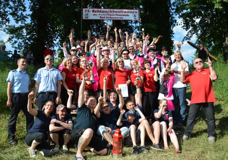 1994 wurde das erste Schlauchbootrennen ausgetragen. Wer eigentlich auf die Idee gekommen ist, dass wissen wir heute nicht mehr genau. Angespornt von der regelmäßigen und spaßigen Teilnahme beim Tauziehen mit unserer Lübbecker Partnerfeuerwehr in Obermehnen zur Wendezeit entstand der Wunsch, soetwas auch in Bad Liebenwerda durchzuführen. Doch wir wollten etwas neues und originelles machen und ein Markenzeichen setzen. Jemand sagte dann, dass wir ja die Schwarze Elster haben, und so wurde die Idee mit dem Schlauchbootrennen geboren.